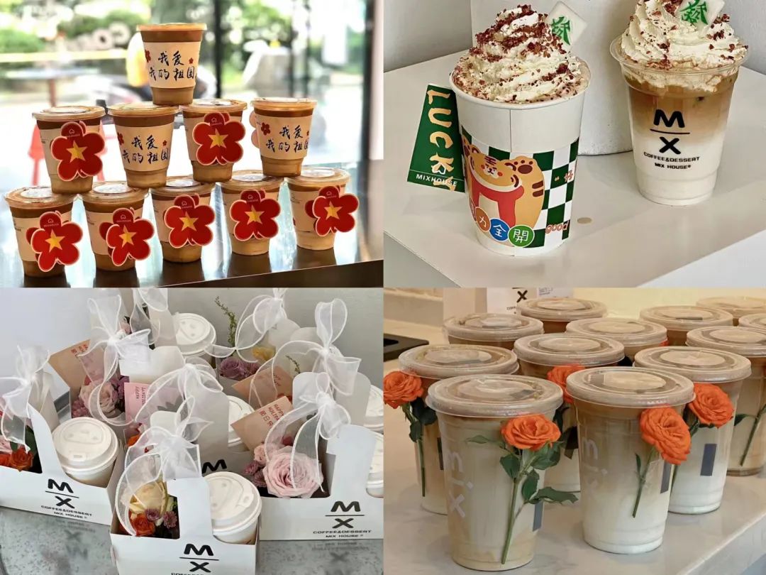 比如剛過去的國慶節(jié)推出“我愛我的祖國”和五角星小紅花設(shè)計(jì)杯套,春節(jié)是虎年主題杯套,三八婦女節(jié)會推出鮮花套盒,教師節(jié)配送學(xué)校的單子會在杯子貼上一支鮮花。
