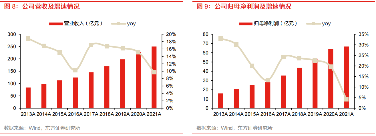 這家在1955年就成立的醬油企業(yè),發(fā)展到今天已經(jīng)有將近4000億的市值。翻看近10年的財報,即使遇上疫情,海天味業(yè)收入和利潤從未有過下降。2021年,海天味業(yè)營收250.0億,其中歸母凈利潤就有66.7億;2022H1營收135.3億元,同比增9.7%;歸母凈利33.9億元,同比增1.2%。
