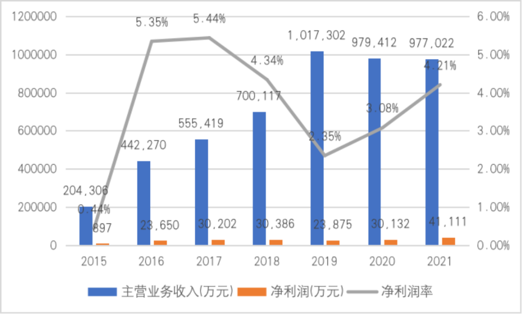 圖 / 良品鋪?zhàn)?015-2021年?duì)I收及凈利潤(rùn)情況