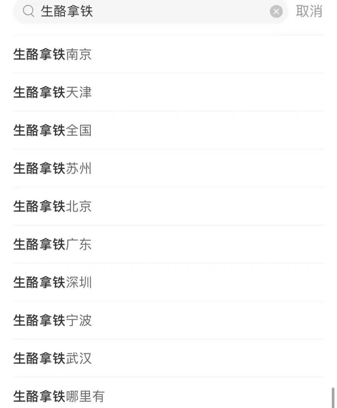 由于生酪拿鐵的實(shí)力太能打,讓杭州和天津兩座“幸運(yùn)城市”不少的消費(fèi)者都為之著迷。試水城市的強(qiáng)烈反響和熱烈討論也讓其他地區(qū)的瑞幸選手愈發(fā)“眼紅”,在某社交平臺(tái)上,好奇的網(wǎng)友們紛紛搜索生酪拿鐵加上各自省市的詞條,似乎在期待著突然哪一天生酪芝士的突然上線,讓場(chǎng)面一度變得很壯觀: