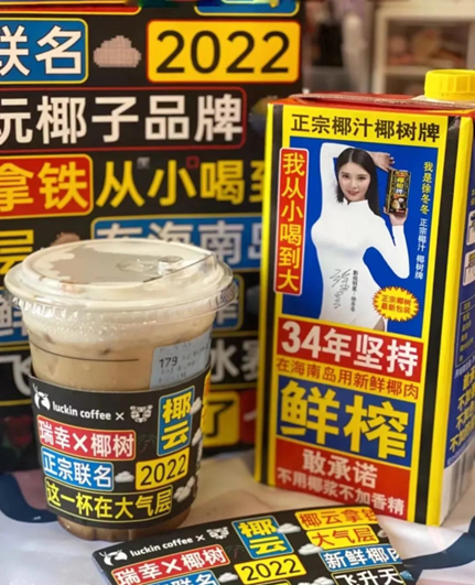 比如今年初夏4月份,椰樹聯(lián)名瑞幸推出了聯(lián)動(dòng)新品“椰云拿鐵”爆火。