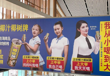 還在央視頻道、新聞聯(lián)播、春晚等權(quán)威平臺(tái)的黃金時(shí)段猛砸廣告,各大電影院的片頭廣告位也驚現(xiàn)椰樹的“胸器”雷人畫面。