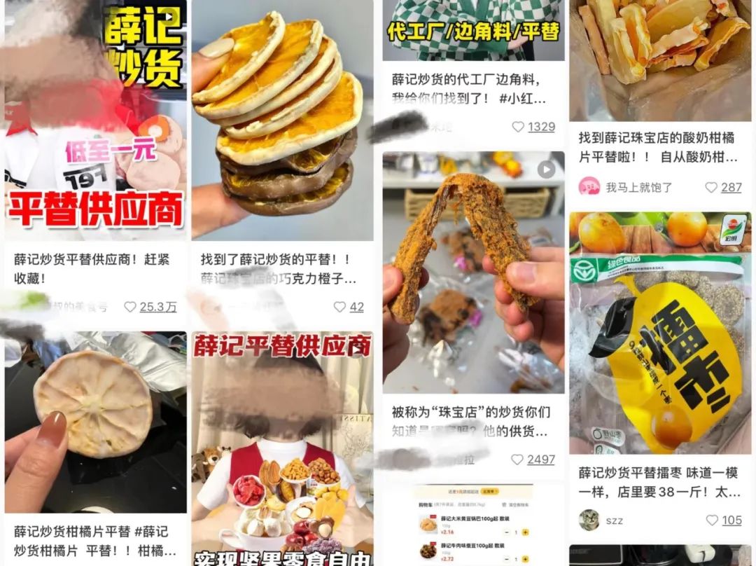 鋅刻度則留意到,在各大社交媒體和短視頻平臺上,不少“堅果炒貨腦袋”和測評博主已經(jīng)開始尋找新炒貨品牌的“平替”,其中有博主發(fā)布的“薛記炒貨平替供應商”的視頻點贊量超25萬,收藏量超100萬,評論中也不不乏網(wǎng)友表示,“我覺得那不是平替,是脫了網(wǎng)紅外衣的真實商品!