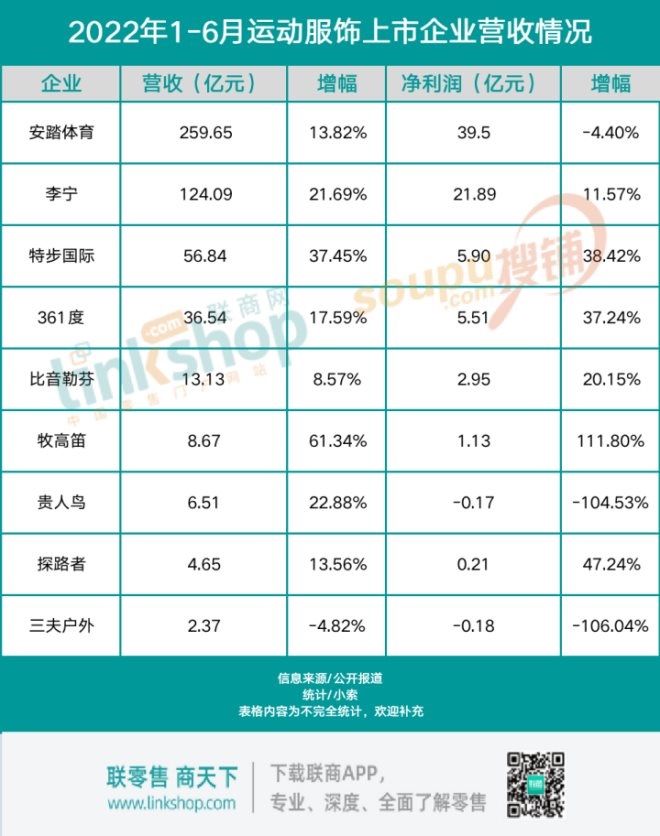 2022年上半年,我國運動服飾企業(yè)表現較為穩(wěn)健。