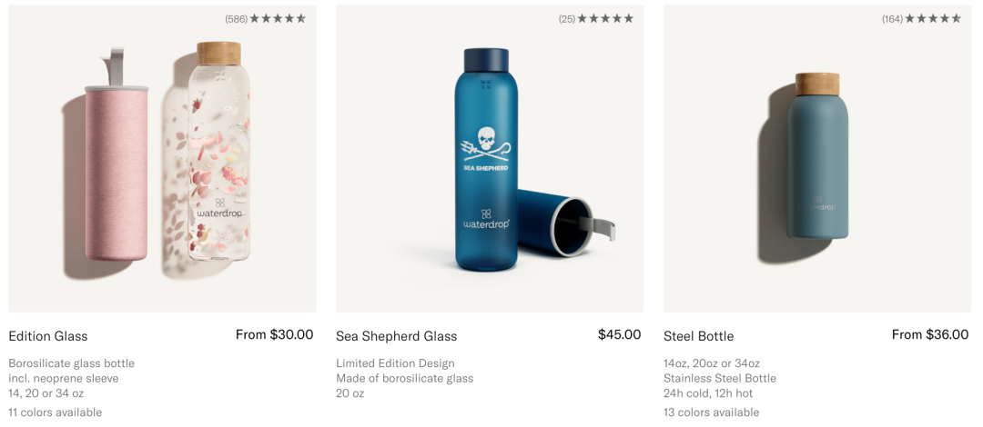 飲水器具是在2021年Waterdrop收購了Purgaty之后才擴(kuò)展出來的產(chǎn)品線,主要包括Lucy智能瓶蓋和其他一些常規(guī)的水杯、水壺等。