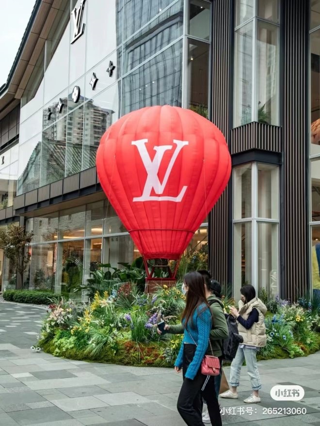 當季節(jié)已經(jīng)成為各大品牌新的營銷節(jié)點時,LV同樣也推出了紅色氣球和彩色熊貓兩個秋日上新裝置。
