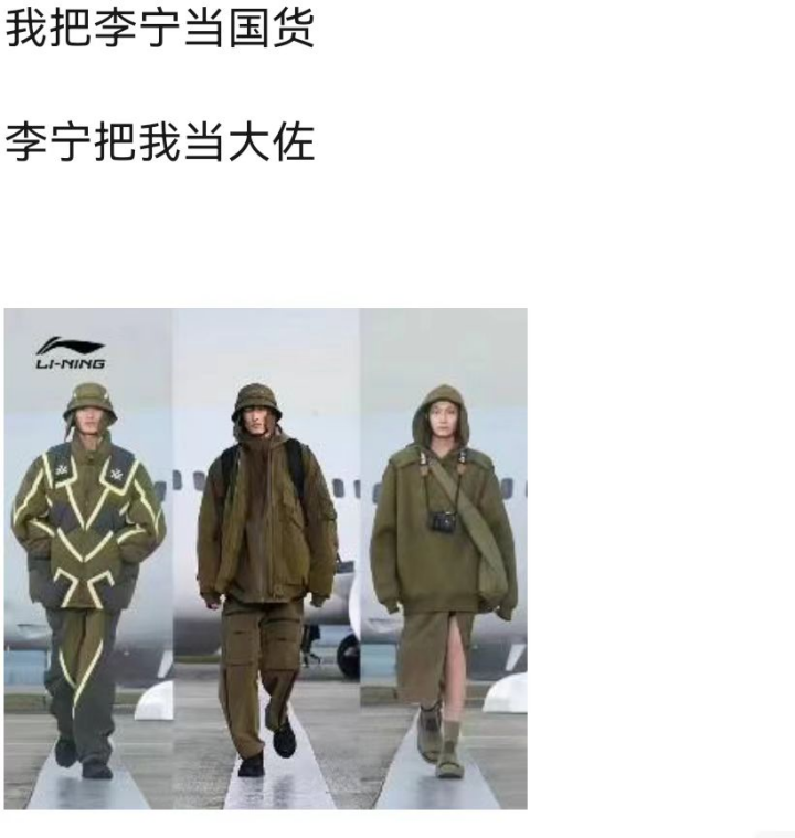 “李寧”做的這把牌是非常好的,可以說(shuō)是“無(wú)與倫比”,因?yàn)椤凹覈?guó)情懷”是華夏兒女底層的東西、銘刻于骨髓、代代相傳,且只能愈發(fā)強(qiáng)烈,很難倒退。因此,之于“李寧”而言,若不犯“原則性錯(cuò)誤、根本性問(wèn)題”就只會(huì)順流而上、水漲船高,但沒(méi)想到的是它還是犯了,而且還是這么低級(jí)的錯(cuò)誤: