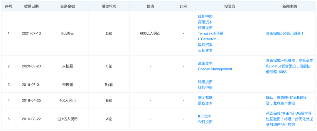 喜茶融資歷程