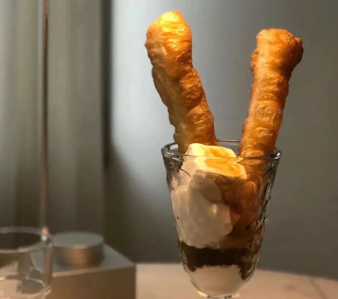 一杯美式咖啡里,頂部一側(cè)是冰淇淋,一側(cè)放著蔥花油條三明治,早餐下午茶,一杯三吃,29.9元有吃有喝全部搞定,被網(wǎng)友們稱為“中西合璧Brunch”,“美式三劍客”。