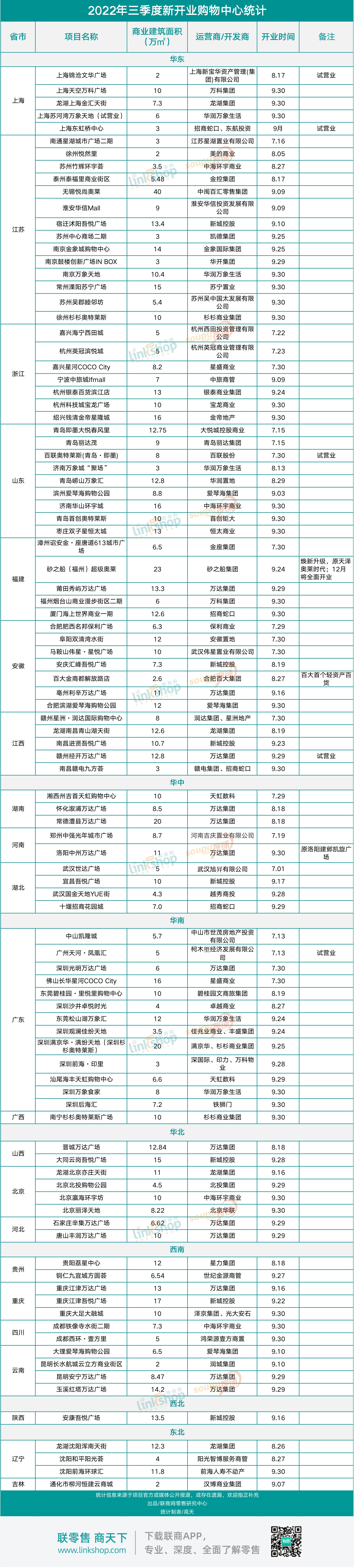 附:2022年第三季度全國新開商業(yè)項(xiàng)目統(tǒng)計(jì)表