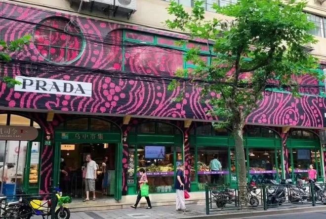去年9月,Prada菜市場x網(wǎng)紅市集烏中市集上海首展在上海徐匯區(qū)烏魯木齊路上揭開神秘面紗,展示期間因接地氣的菜市場與高大上的奢侈品之間產(chǎn)生的強(qiáng)大反差感,引發(fā)了不少熱議,賺足了眼球。此次的跨界活動也表明了Prada渴望急速打入年輕圈層的心態(tài)。今年1月,LV開設(shè)了限時咖啡館,華倫天奴開了一家限時書店,Burberry推出Thomas Burberry靈感拉花咖啡等各種形式的店鋪......