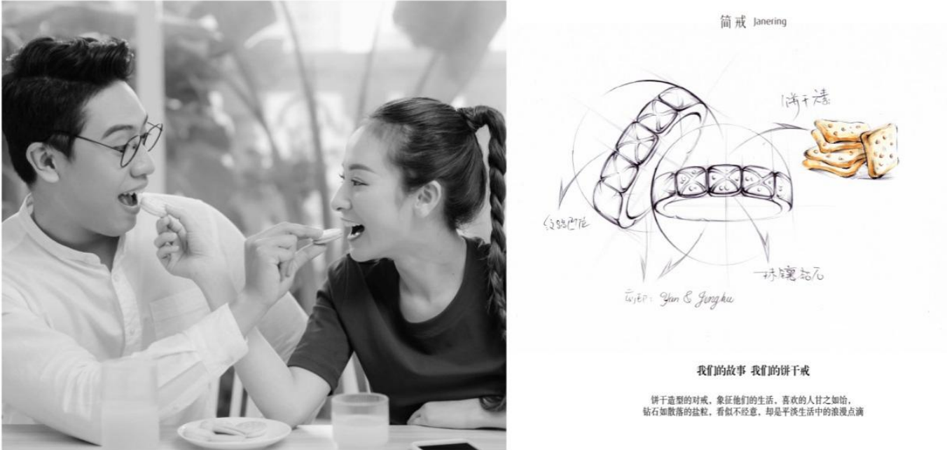 「簡戒」于2020年4月成立,創(chuàng)始人Ivy在珠寶行業(yè)有超過20年的市場、管理經(jīng)驗(yàn)。伴隨95后、00后逐漸步入適婚年齡,中國的珠寶消費(fèi)需求、消費(fèi)趨勢(shì)正在發(fā)生變革。除婚慶剛需之外,基于對(duì)生活美好情感的記錄、紀(jì)念需求,衍生出了情侶定制、周年紀(jì)念定制、親子定制、寵物定制等新的需求。