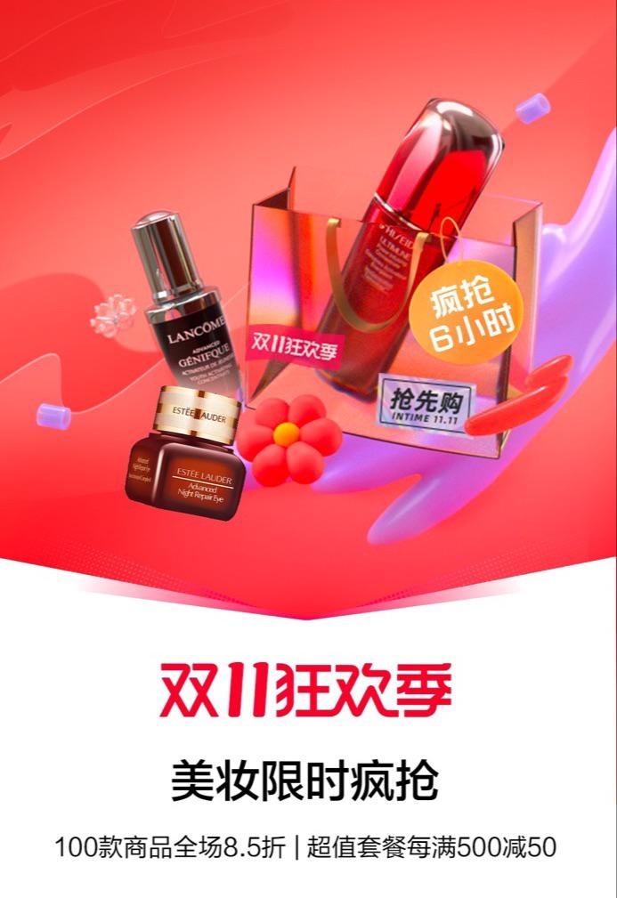 緊接著,銀泰百貨雙11福利不斷:從10月25日起,“經(jīng)典節(jié)目”美妝預(yù)購(gòu),將在銀泰百貨杭州、寧波、溫州、合肥、西安、義烏等城市八家門店開(kāi)啟,為期一周,不用湊單,去商場(chǎng)提前享雙11最大優(yōu)惠福利。另外,直到10月31日,消費(fèi)者都可上喵街APP限時(shí)搶購(gòu)無(wú)門檻券,花11元搶購(gòu)111元的消費(fèi)券;11月1日~11月11日,美妝消費(fèi)滿1000元送200元美妝服飾券。