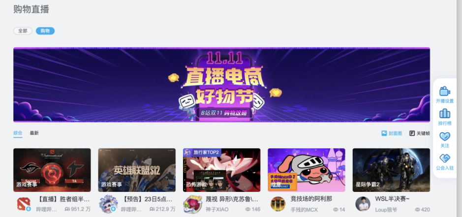 進(jìn)入10月以來,B站“直播電商小助手”頻繁發(fā)布直播電商規(guī)則,京東聯(lián)盟、淘寶聯(lián)盟操作方法。雙十一前夕,B站還為直播帶貨開放了公域入口,在首頁直播欄目下設(shè)購物頻道。此前,B站電商直播則多為“地下”進(jìn)行,用戶只能從UP主的賬號、內(nèi)容頁面進(jìn)入帶貨直播間。