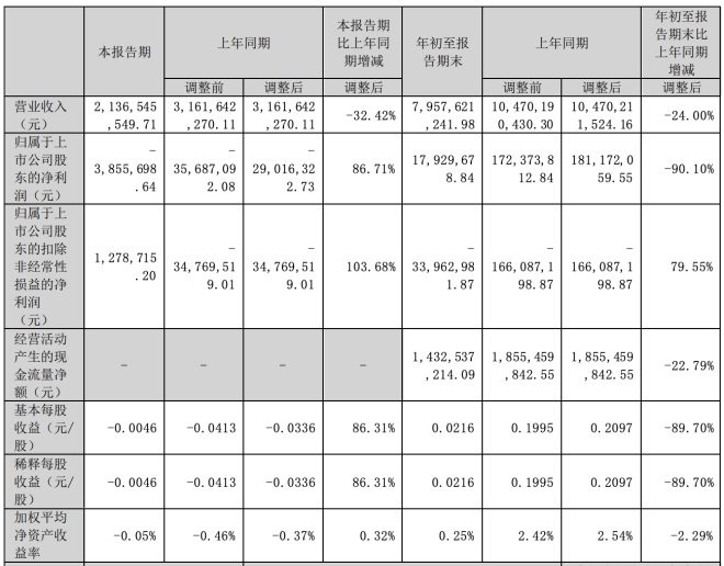 2022年第三季度,步步高實(shí)現(xiàn)營收21.37億元,同比下降32.42%;歸屬于上市公司股東的凈利潤-385.57萬元,同比增長86.71%;扣非凈利潤127.87萬元,同比增長103.68%。