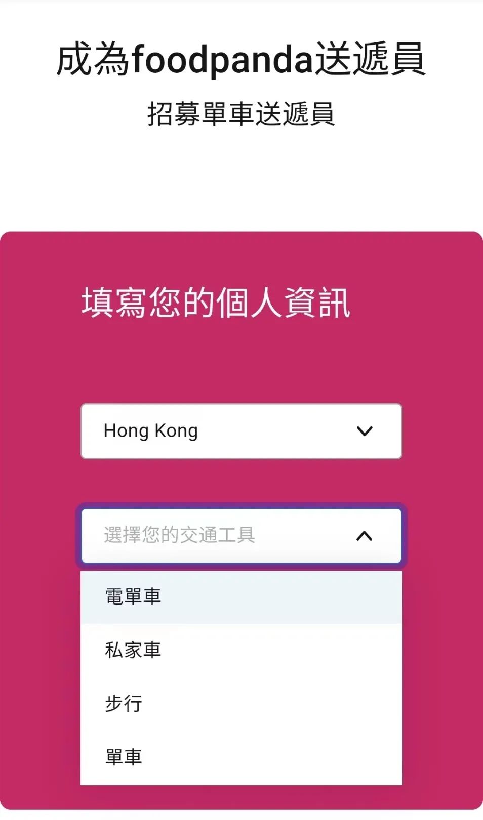 香港外賣員有四種主要的交通方式,圖源Foodpanda 官網(wǎng)