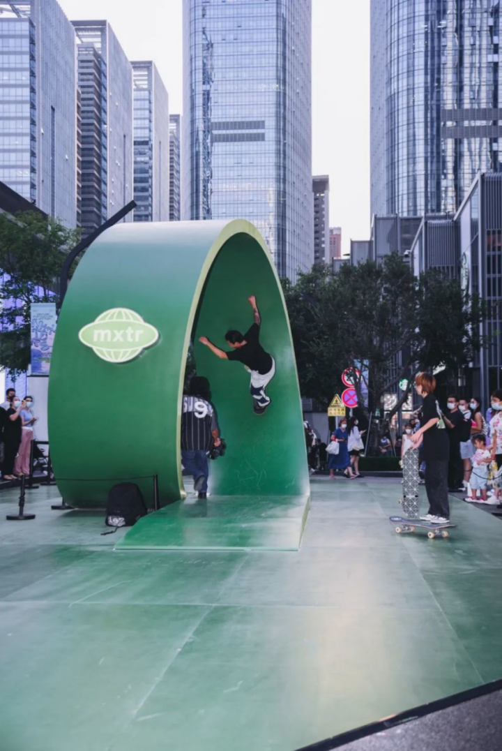 這條綠色的滑板大道,在高街延伸,以開(kāi)放格局打破“商業(yè)空間”和“路人”之間的高墻,也打破了不同品牌文化之間的高墻,潮流快閃店將與社群合作、雜志、展覽、合作聯(lián)名等多元內(nèi)容串聯(lián)。