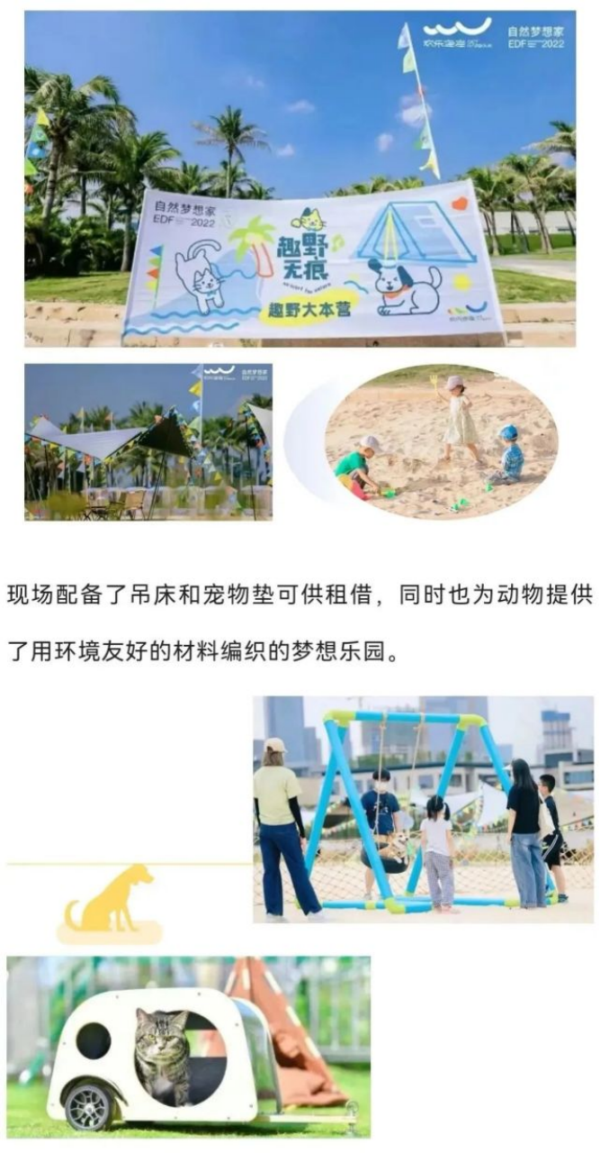 今年520期間推出以“精致露營(yíng)+寵物”為體驗(yàn)?zāi)P偷膶櫸镉押寐稜I(yíng),現(xiàn)場(chǎng)配備了吊床和寵物墊可供租借,同時(shí)也為萌寵提供了用環(huán)境友好材料編織的夢(mèng)想樂(lè)園,煥新升級(jí)室內(nèi)外開(kāi)放空間。