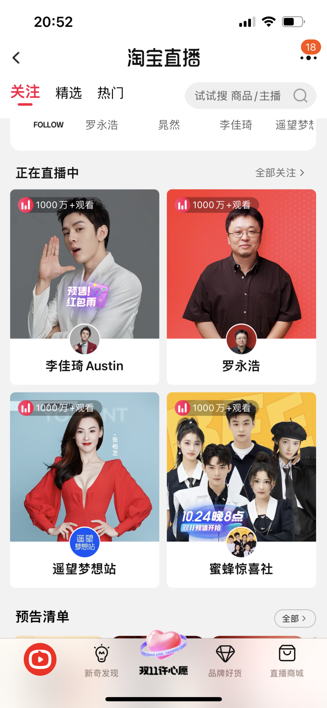圖注:雙11預(yù)售首日淘寶主播開播截圖。