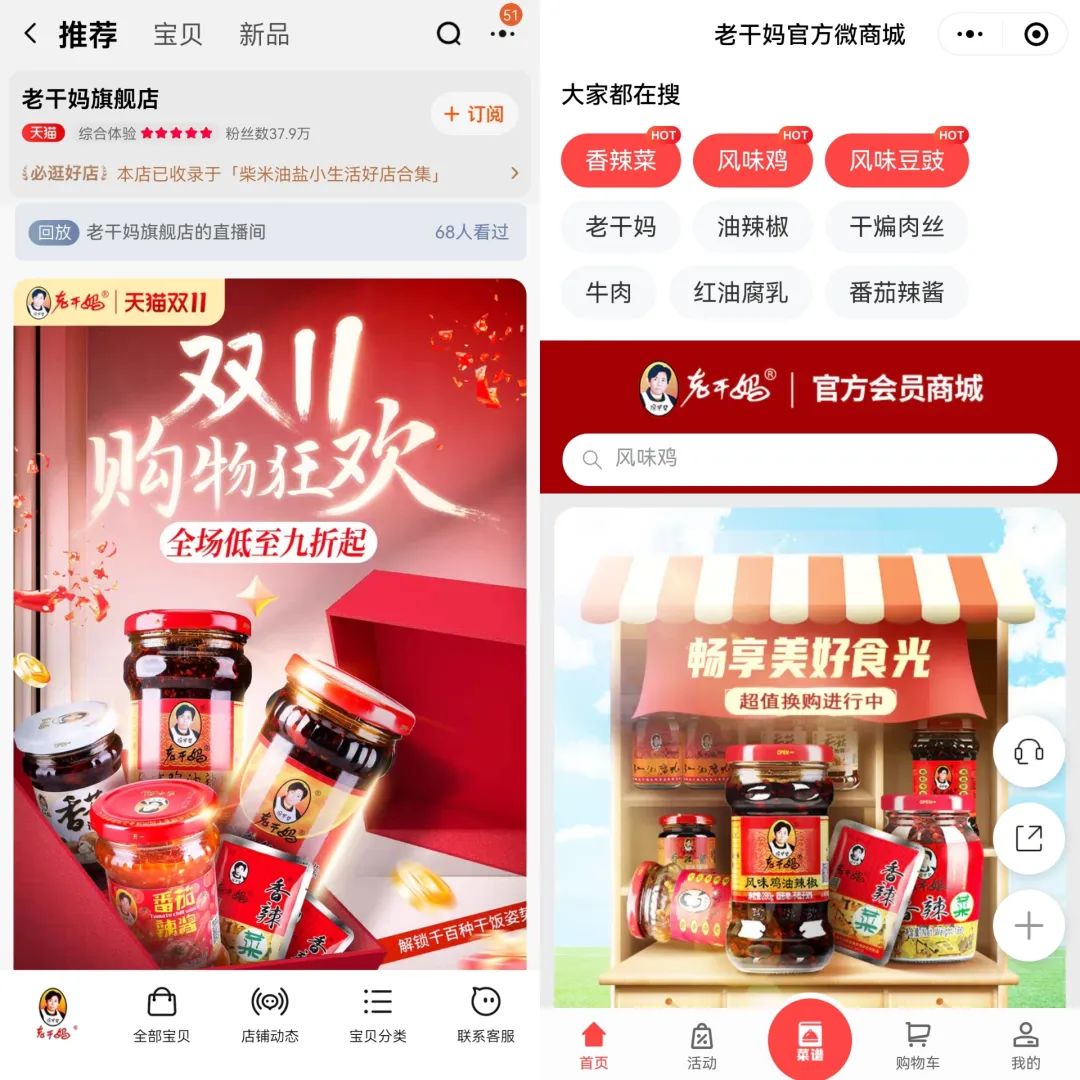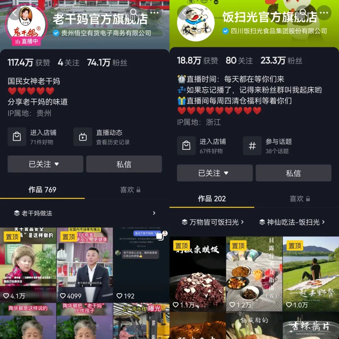 2018年4月,老干媽天貓旗艦店正式營業(yè),2020年,老干媽又開設(shè)了抖音賬號和微信的“陶奶奶會員店”小程序,但直到2021年,老干媽才在抖音帶貨。