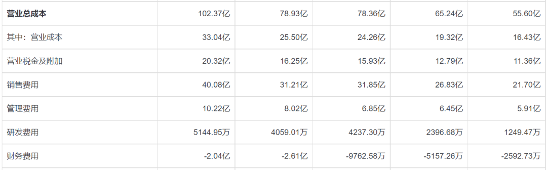 除了廣告費(fèi)用,高企的銷售費(fèi)用也是古井貢近幾年的主要支出項(xiàng)。