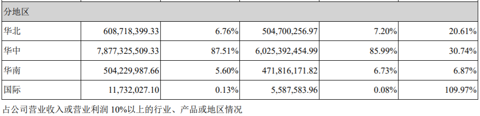 2022年上半年,華中地區(qū)為古井貢酒貢獻(xiàn)了78.77億元的收入,營(yíng)收占比為87.51%。