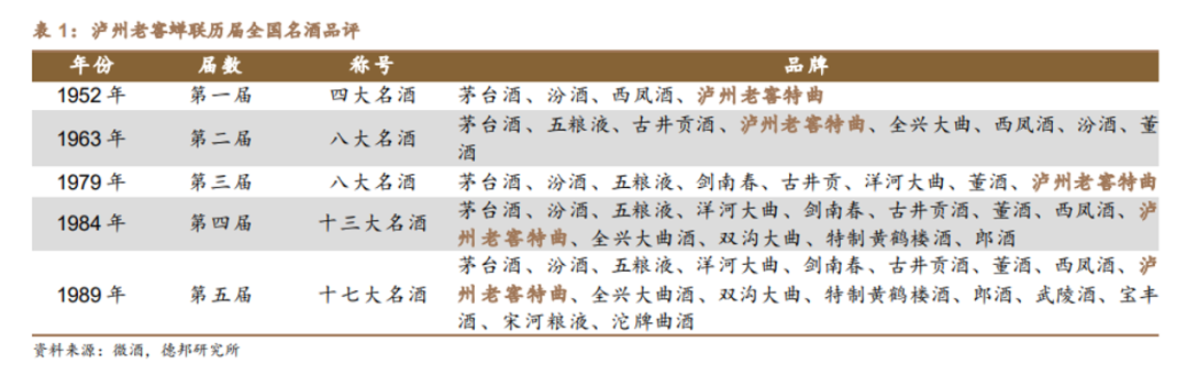 瀘州老窖被稱為“濃香鼻祖”,在1952年的第一次全國評酒會上,就躋身首屆中國“四大名酒”?梢哉f,在品牌的歷史底蘊上,瀘州老窖并不遜色于任何品牌。