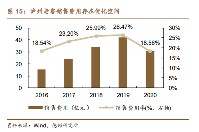 今年前三季度,瀘州老窖的營銷費用總計20.12億元,占總營收比重為11.48%。而去年同期營銷費用總計19.37億元,占總營收比重為13.73%。瀘州老窖的營銷投入所帶來的收益在明顯增加,在這一現(xiàn)象背后,是瀘州老窖品牌溢價、渠道和營銷等綜合實力的增長。這一點,從過去幾年其銷售費用率的變動中也可以得到證明。