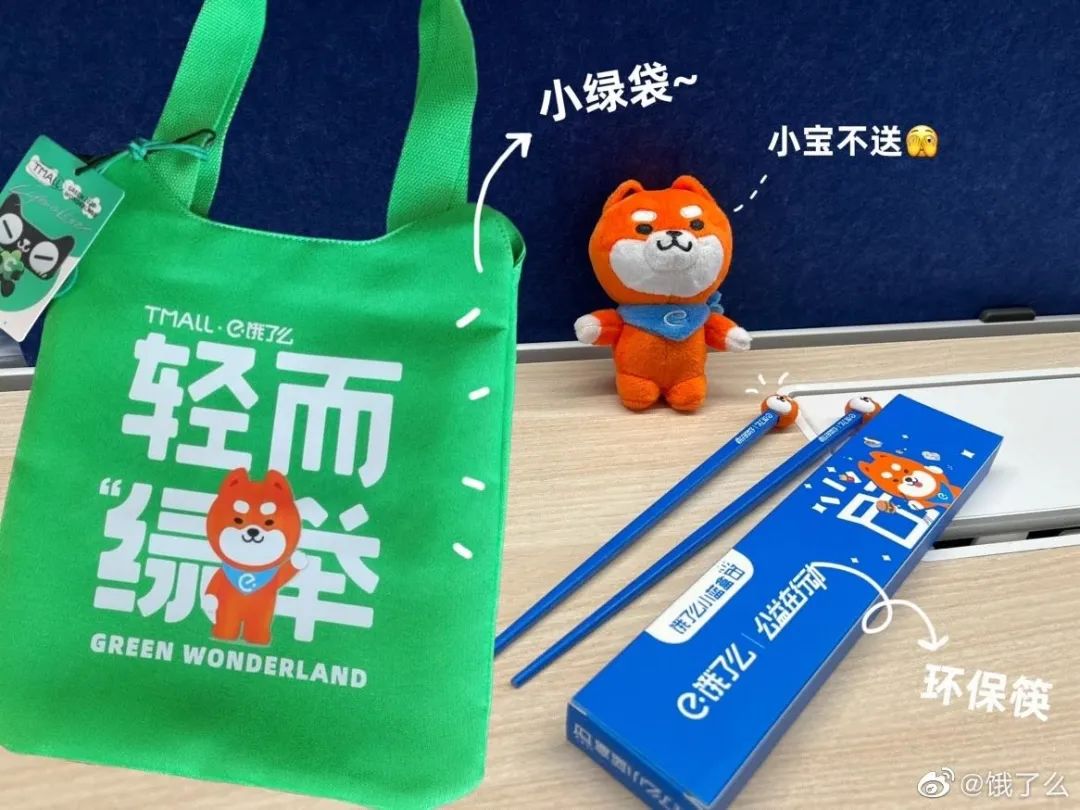 在餓了么官方微博中,目前只看到為天貓雙11轉(zhuǎn)發(fā)助力的消息,以及與天貓定制的“環(huán)保小綠袋”等小規(guī)模活動(dòng)。