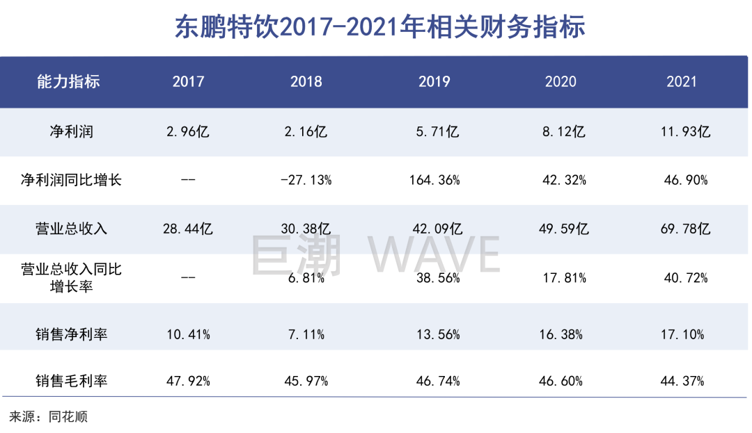 東鵬特飲的進擊肉眼可見,2017年底至2021年,四年間營收增長了1.5倍,凈利潤增長了3倍?梢钥闯,得益于品牌力的持續(xù)提升,公司相關(guān)費用的增長有所收斂,凈利率已提升至歷史最高點。