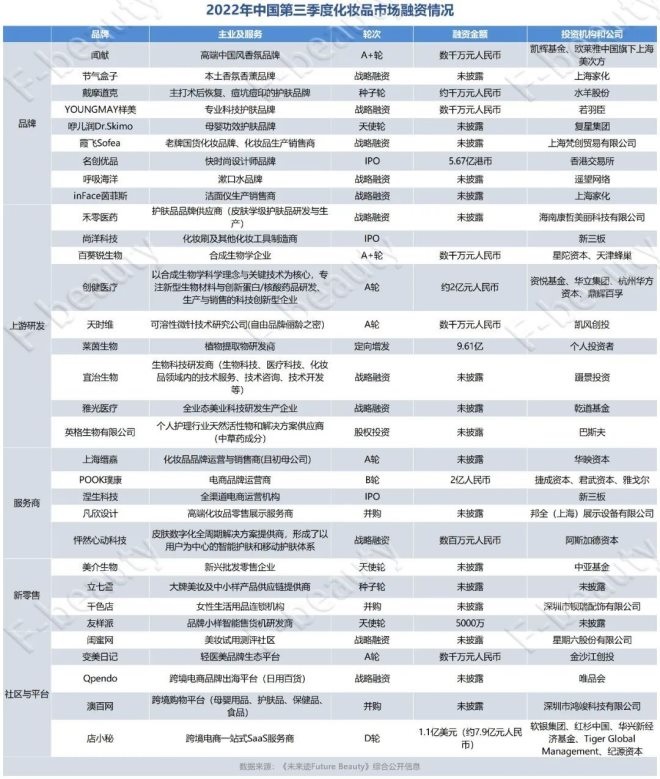 美妝行業(yè)的投融資在經(jīng)歷了第二季度的低迷之后,2022年第三季度逐漸回暖。