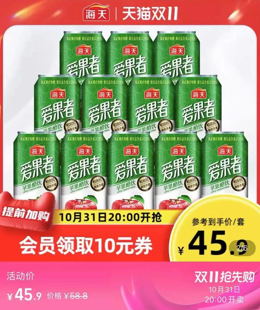 海天味業(yè)賣飲料并非首次,早在2016年就推出了“張小主蘋果醋爽”果汁飲料。2021年3月,海天曾推出一款名為“愛果者”的蘋果醋飲料。每瓶規(guī)格310ml,以一箱12瓶售賣,定價(jià)52元,約合每瓶4.3元。