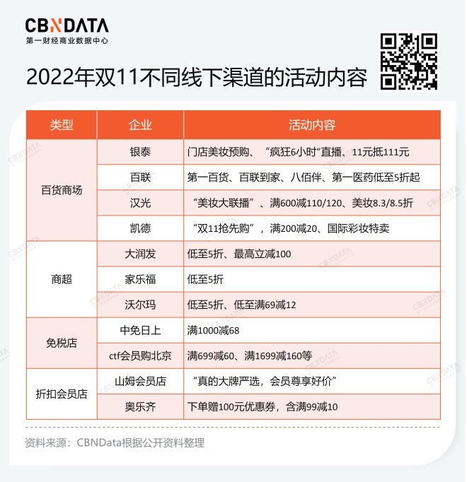 除了百貨店,商超、免稅店、會員店、折扣店也都在就雙11做活動,但力度卻有所不同。一批玩家因為渠道定位、降價空間等多種原因,投入雙11的力度有限,甚至極為克制。