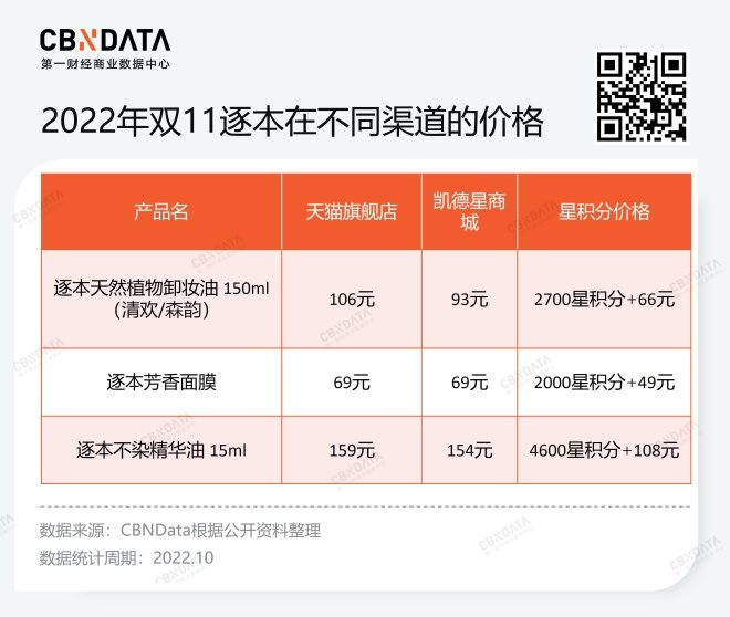 從價格來看,逐本為了入駐凱德星商城,也拿出了足夠的誠意。雙11期間,逐本不少系列產(chǎn)品在凱德星上與天貓旗艦店同價,甚至更低。如果以凱德星積分來抵扣,基本可以達到全網(wǎng)最低。以逐本明星單品植物卸妝油(清歡/森韻)為例,雙11凱德星商城價格93元/瓶,比天貓旗艦店低12.3%,星積分后價格僅66元/瓶,甚至低于天貓雙11預(yù)售首日李佳琦直播間的到手價88元/瓶。