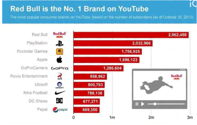 目前,紅牛的YouTube訂閱者多達(dá)1070萬(wàn),Instagram粉絲為1646萬(wàn),無(wú)數(shù)公司想要的流量和年輕人,紅牛已經(jīng)早早握在手中。
