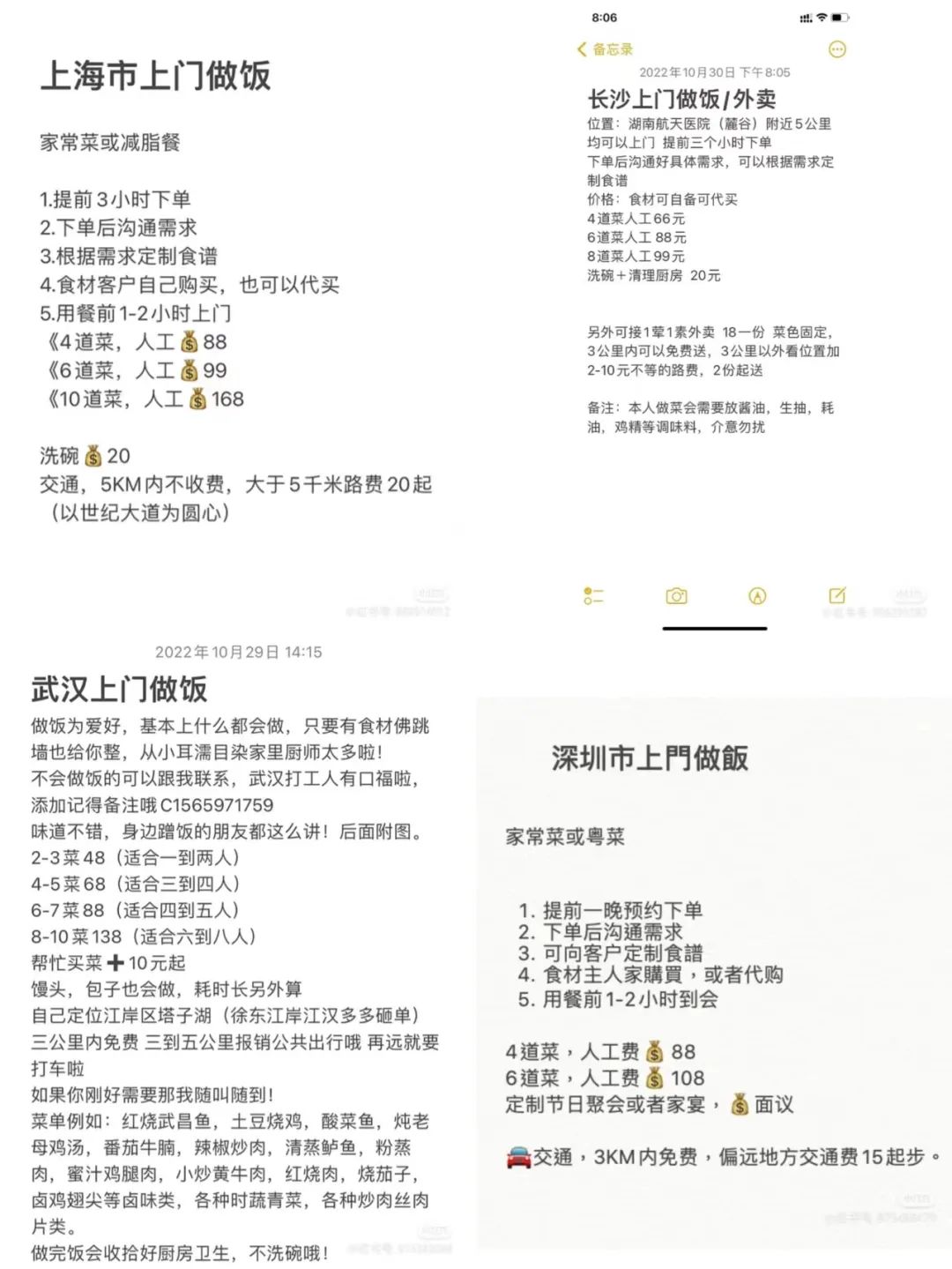 在小紅書上搜索,杭州、上海、北京、成都、重慶、武漢等地均有網(wǎng)友在網(wǎng)上發(fā)帖提供上門私廚服務(wù)。