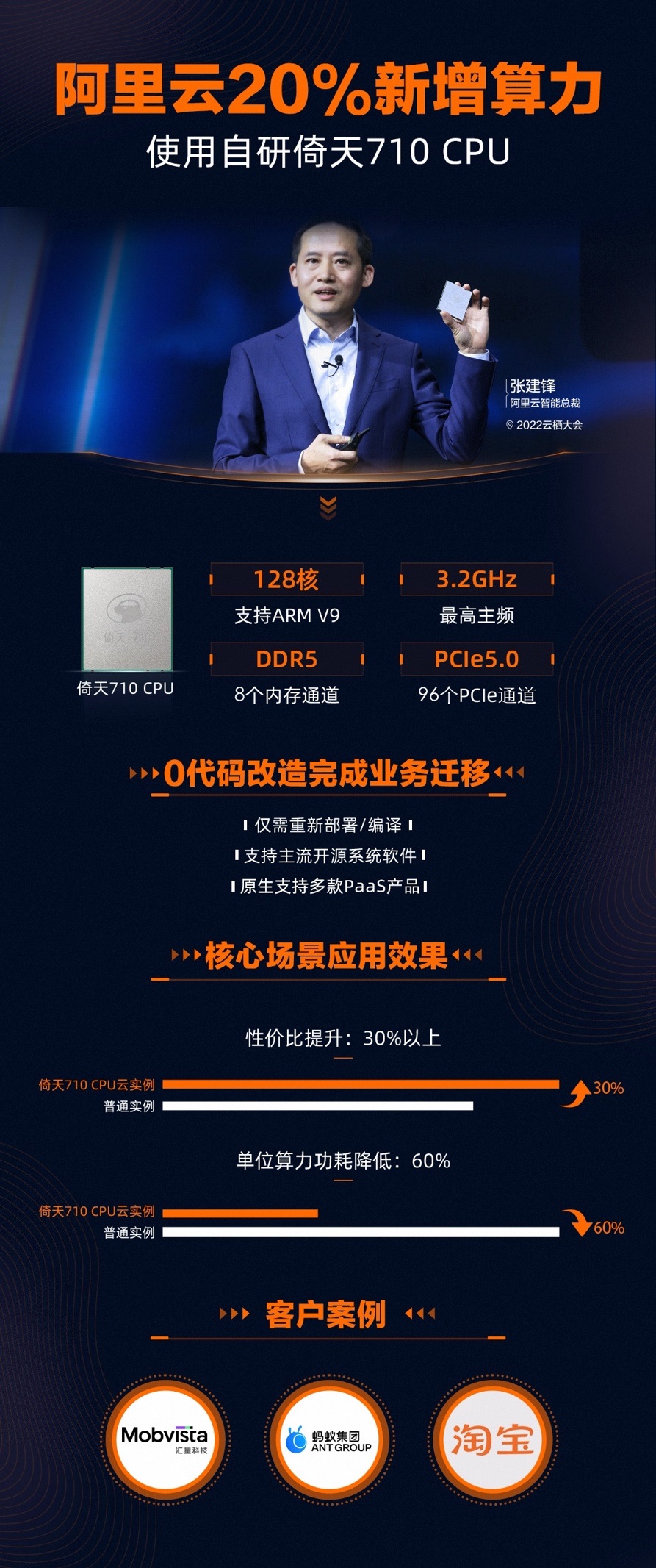 11月3日,阿里巴巴在2022云棲大會(huì)上宣布,自研CPU倚天710已大規(guī)模應(yīng)用,阿里云未來(lái)兩年20%的新增算力將使用自研CPU,這是阿里算力攻堅(jiān)的重要突破。