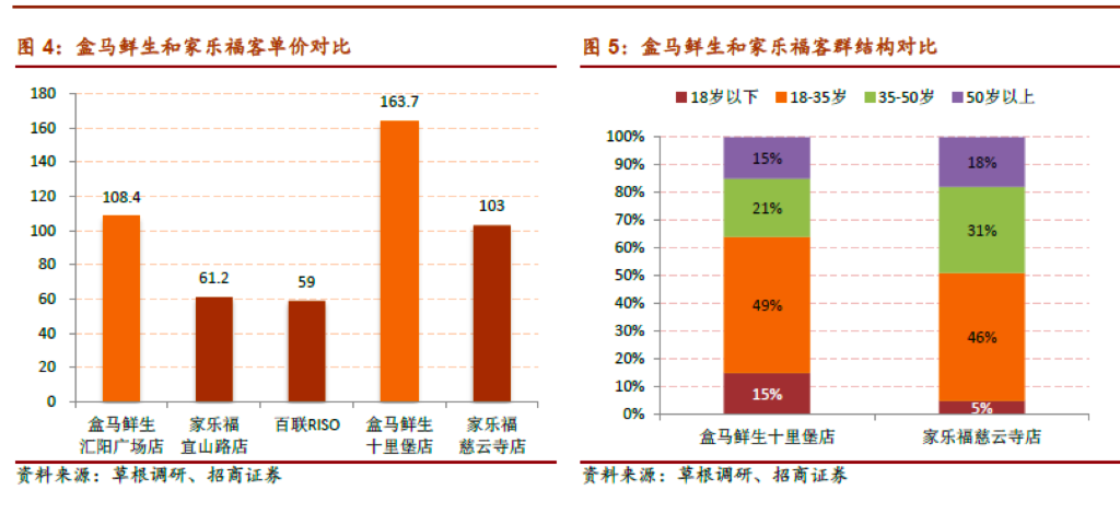 招商證券2017年發(fā)布的一份研報(bào)顯示,草根調(diào)研通過(guò)對(duì)比北京相距1.7公里的盒馬鮮生(匯陽(yáng)廣場(chǎng)店)和家樂(lè)福(光啟城店)多個(gè)非海鮮類20種代表性單品價(jià)格,發(fā)現(xiàn)這20種商品盒馬鮮生價(jià)格較家樂(lè)福平均高出9.51%,尤其休閑食品和日用品相對(duì)傳統(tǒng)超市價(jià)格更高。