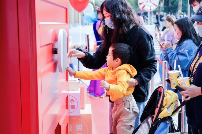圖說:市民在銀泰百貨超級扭蛋機(jī)前參與抽獎