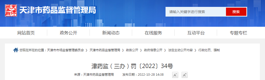 根據(jù)天津市藥監(jiān)局發(fā)布的處罰信息,2022年8月18日,天津市藥品監(jiān)督管理局接到對天津盛世永業(yè)科技發(fā)展有限公司(以下簡稱“盛世永業(yè)”)的投訴,并立案調(diào)查。