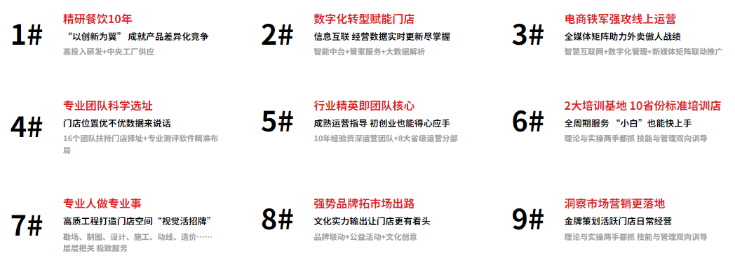 這背后要提及塔斯汀對于加盟商的服務(wù)。官網(wǎng)介紹,品牌方有16個團隊幫助加盟商科學(xué)選址、有10年經(jīng)驗資深運營團隊指導(dǎo)加盟商經(jīng)營、還有全媒體矩陣助力加盟商做線上外賣……