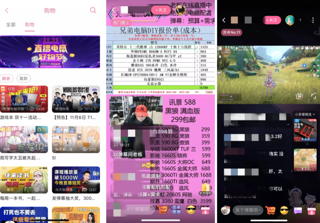 B站直播區(qū)購物板塊界面及不同帶貨UP主直播間風(fēng)格