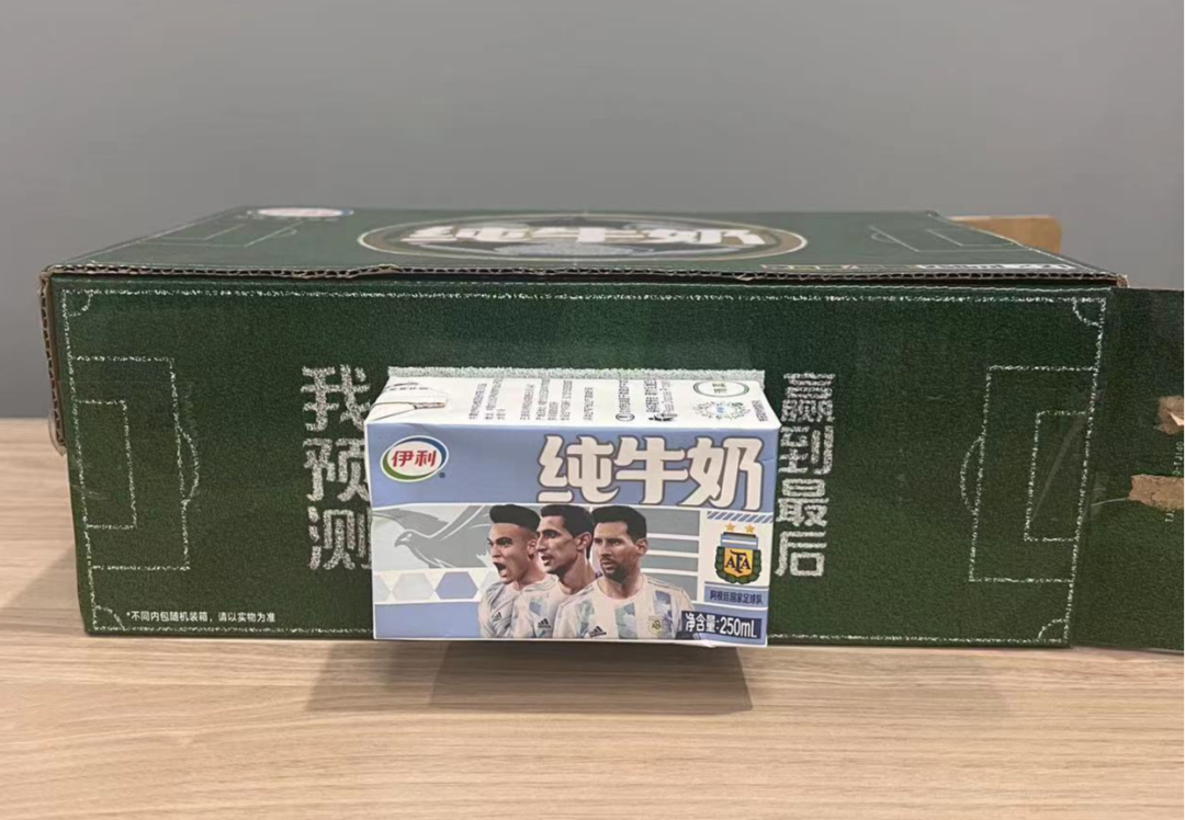 伊利這次采用了“盲盒”玩法:用戶買的時(shí)候只能看到統(tǒng)一的外箱包裝,并不知道內(nèi)盒上印的是哪些球隊(duì)球星。