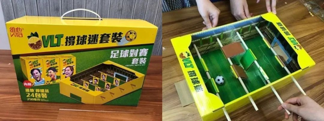 維他檸檬茶的腦洞開得也很大,直接將包裝變成足球場(chǎng)。