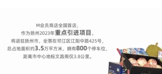 據(jù)悉,M會員商店全國首店將落子揚州,計劃于2023年4月正式開業(yè)。目前,門店外觀效果圖已經(jīng)傳出,線下宣傳活動正在開展,消費者已經(jīng)開始辦卡。