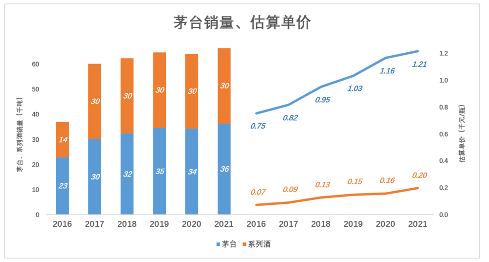 可以看到,近年來的趨勢——茅臺基酒占比提升、系列酒基酒占比下降,這意味著庫存基酒“含金量”不斷提高。