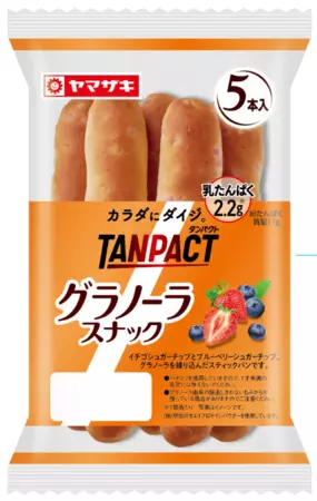 グラノーラスナック谷物麥片面包棒就是山崎面包和TANPACT的一款聯(lián)名產(chǎn)品,這個面包棒集兩家所長,除了添加了草莓干、藍莓干和谷物麥片之外,還在面團中添加了乳蛋白,每吃一袋面包共可攝入11g蛋白(其中有2.2g乳蛋白)。