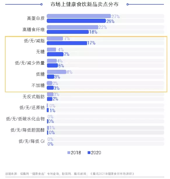 近幾年,高蛋白在食品行業(yè)是絕對的熱點。根據(jù)騰訊發(fā)布的《2021健康食飲行業(yè)洞察白皮書》的數(shù)據(jù),高蛋白已成為市場上的健康食飲新品賣點第一位。