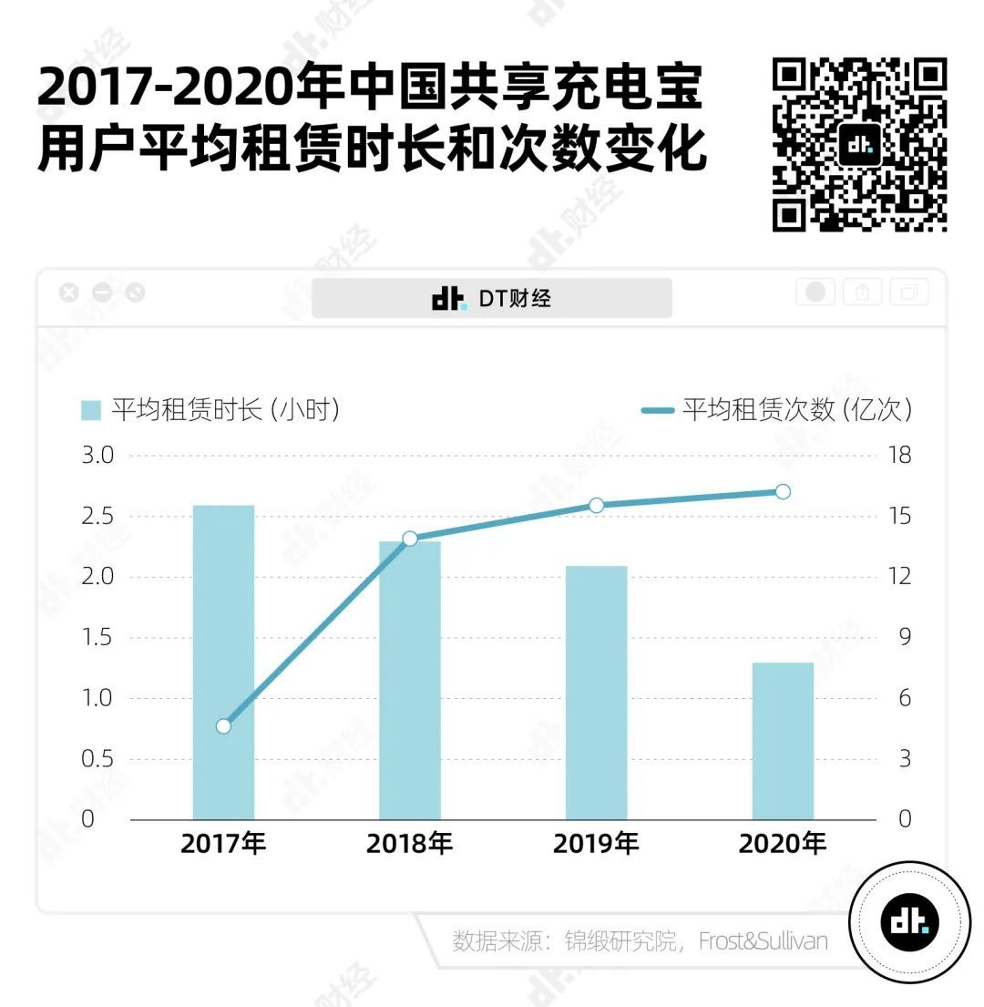 2020年每個用戶的充電寶平均租賃時長,只有2017年的一半。且2020年租賃次數(shù)同比2019年增長只有3.85%,但2018年租賃次數(shù)的增長率高達202.17%。