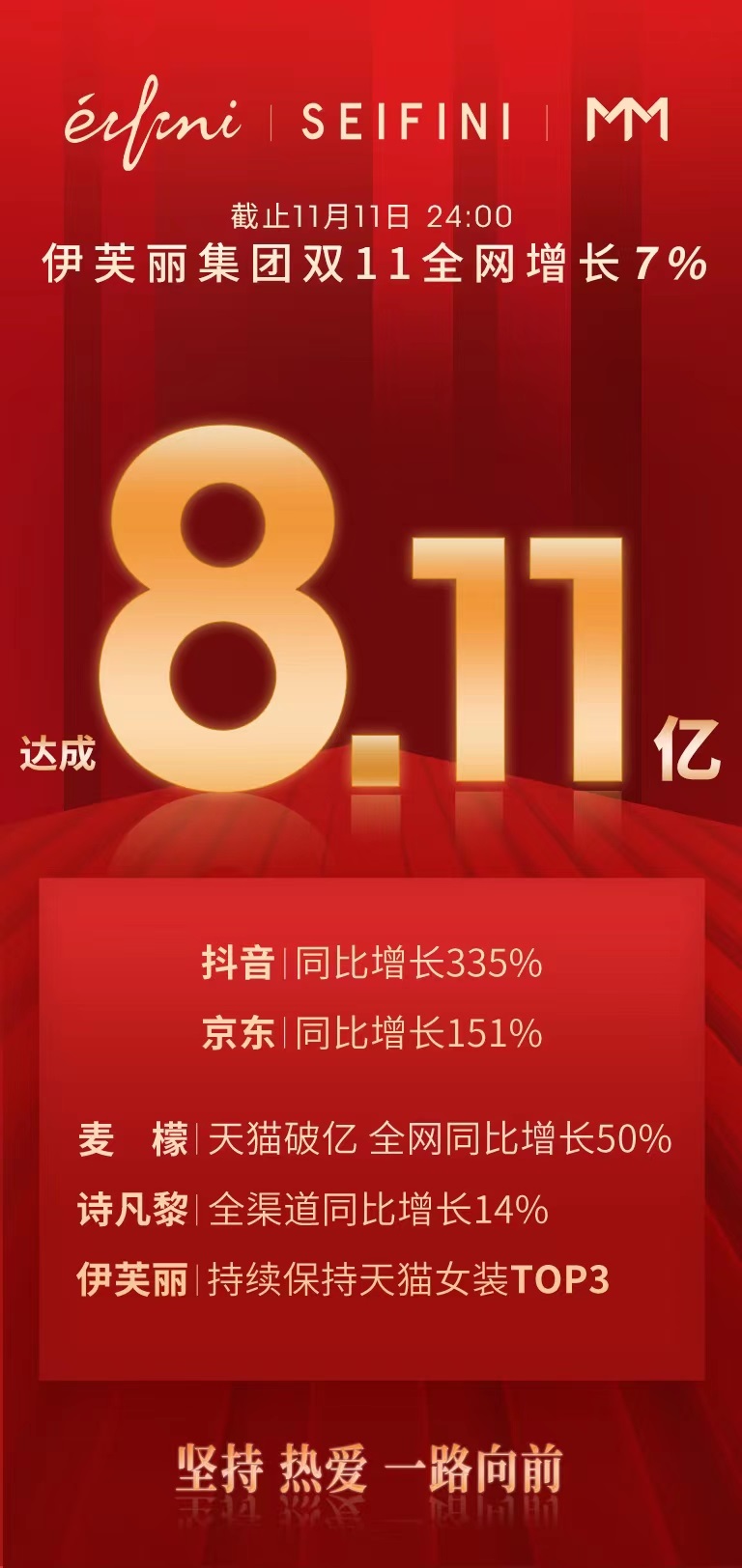 8.11億!伊芙麗集團(tuán)雙11最終戰(zhàn)報(bào)出爐